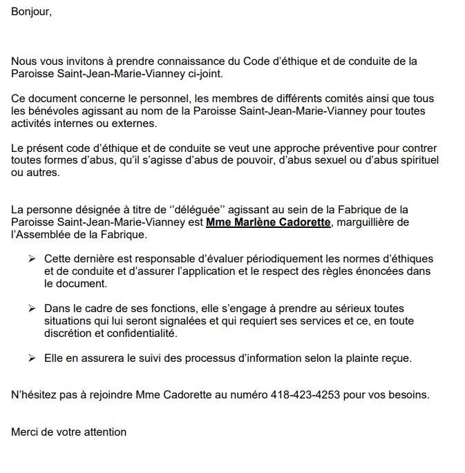 La paroisse Saint-Jean-Marie-Vianney est formée de 4 communautés: