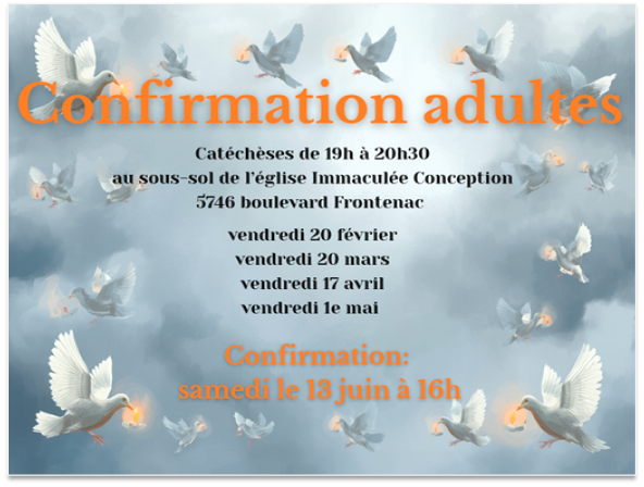 Tu désires grandir dans la foi et suivre les pas du Seigneur? Des catéchèses pour adultes sont offertes! Bienvenue à tous!