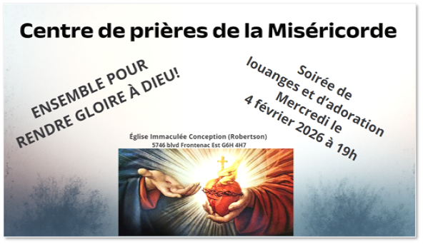 Voici un temps de grâces pour notre unité missionnaire des Appalaches. Soyons nombreux à prier notre Mère des cieux!