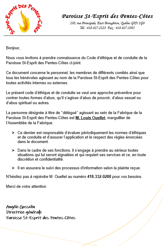 paroissesepc@pentes-cotes.com Tél: 418 427-2323 poste 223